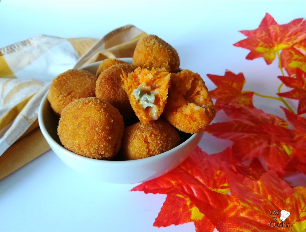 Polpette di zucca con cuore di gorgonzola: piccole palle dorate che hanno la capacità di rendere felice chiunque li assaggi! Semplici da preparare, ideali per una cena, un buffet o semplicemente per godersi una serata autunnale di fronte ad un bel film!